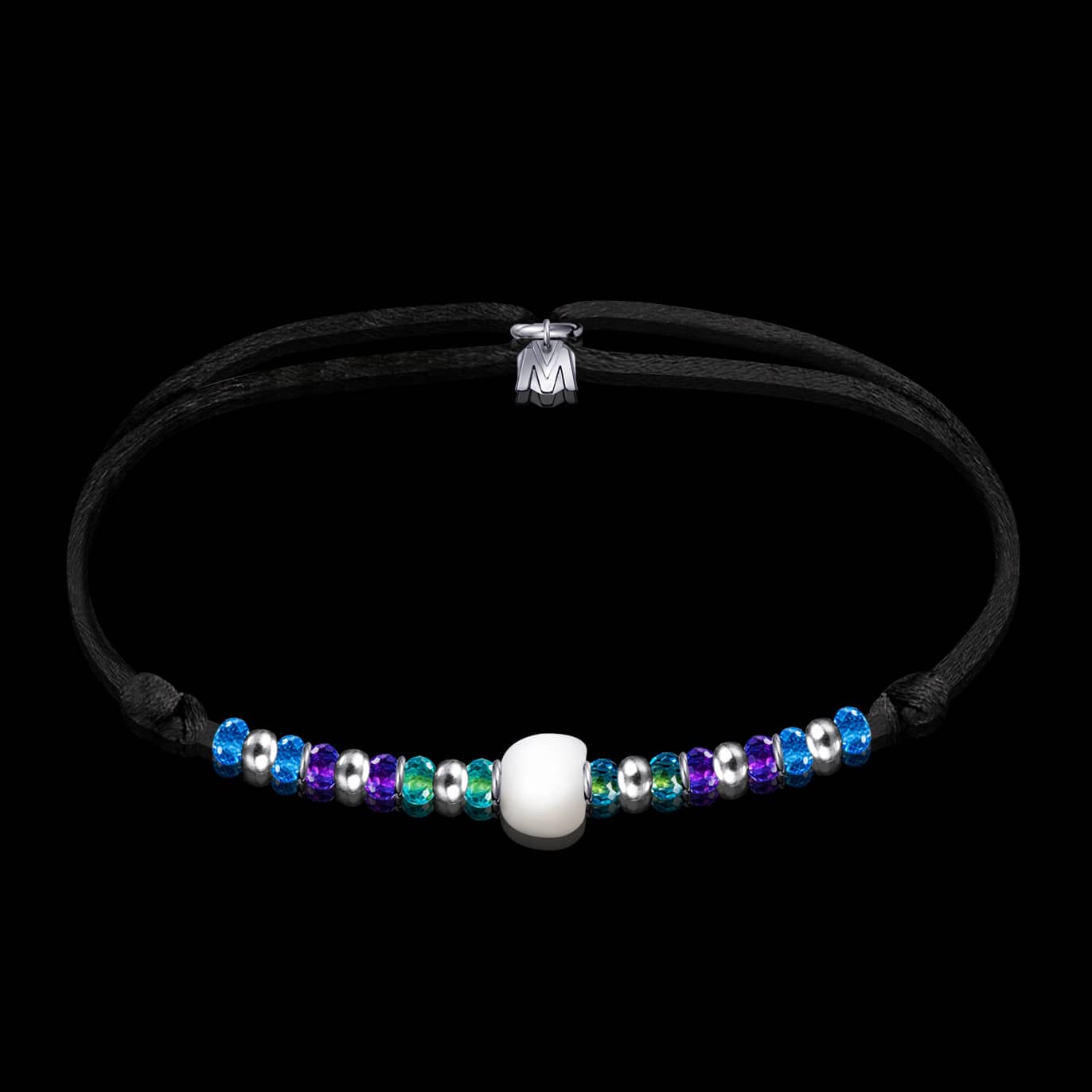 Nos bracelets et colliers se présentent sur un cordon extrêmement confortable et résistant. Grâce à deux nœuds coulissants, vous pouvez l’ajuster à la perfection sur votre poignet et votre cou.