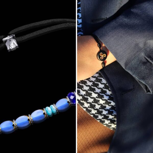 Nos bracelets et colliers se présentent sur un cordon extrêmement confortable et résistant. Grâce à deux nœuds coulissants, vous pouvez l’ajuster à la perfection sur votre poignet et votre cou.