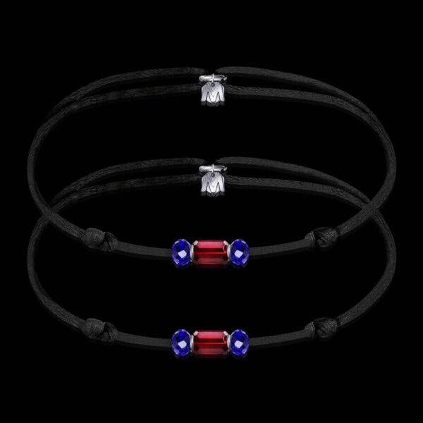 Un rouge ardent, deux bleus profonds, et un cordon noir garanti à vie pour lier le tout. Ce bracelet, c’est un serment discret, mais puissant. Une promesse à porter au poignet.