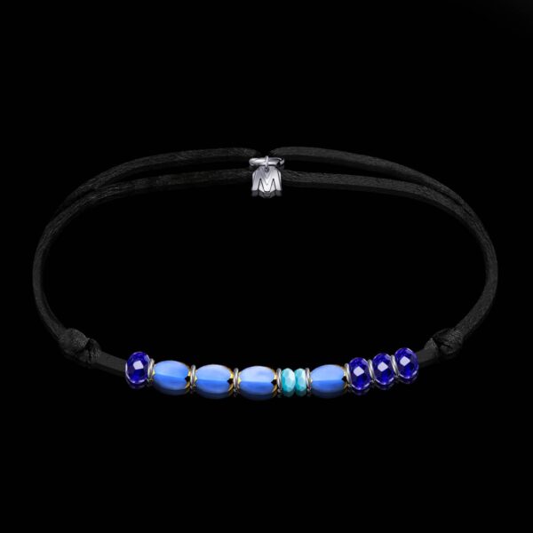 Nos bracelets et colliers se présentent sur un cordon extrêmement confortable et résistant. Grâce à deux nœuds coulissants, vous pouvez l’ajuster à la perfection sur votre poignet et votre cou.