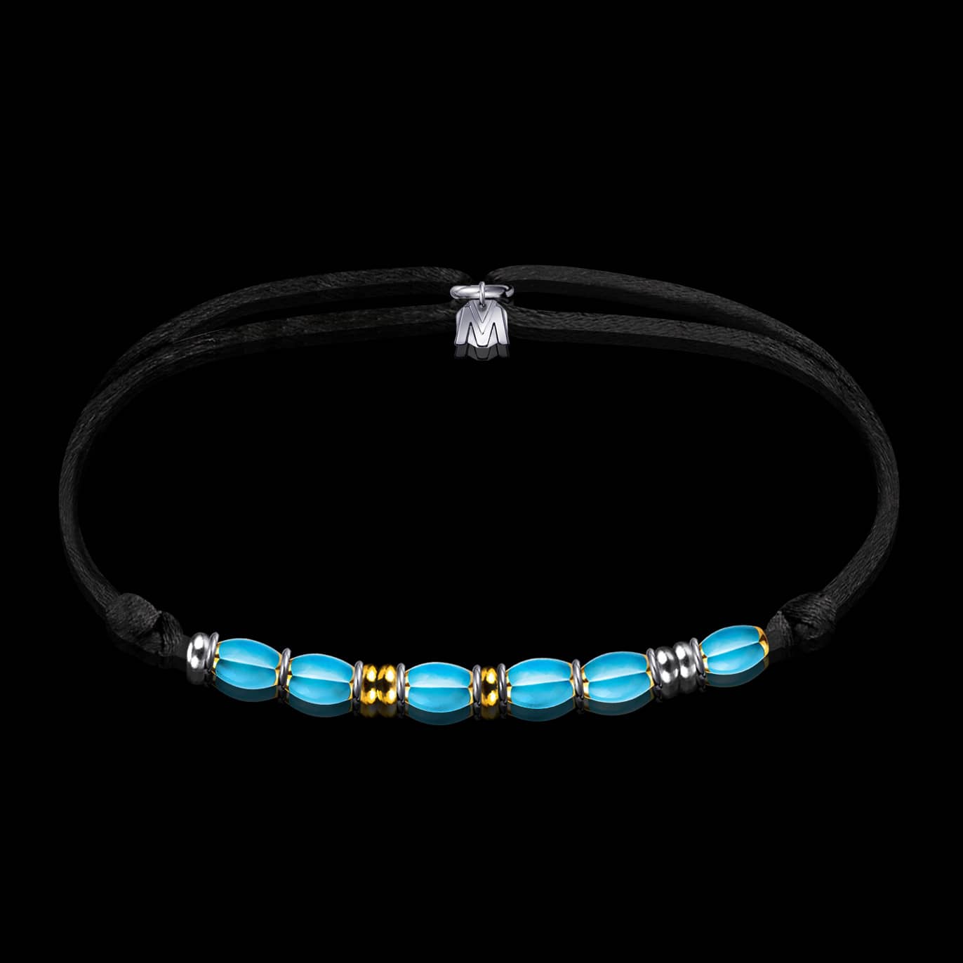Nos bracelets et colliers se présentent sur un cordon extrêmement confortable et résistant. Grâce à deux nœuds coulissants, vous pouvez l’ajuster à la perfection sur votre poignet et votre cou.
