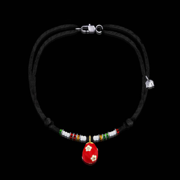 Découvrez le collier Joyaux de Pâques rouge, une création pétillante présentant un œuf émaillé et verre de Murano.